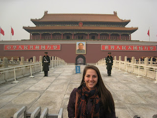 We woke up around 7:30 to some announcement in Chinese blaring in our ears that Bryan and I managed to catch said that we were supposed to arrive at 8:56 am. I attempted to go back to sleep for a little while and then we all got up and got our stuff together. Once we got off the train we took a bathroom break and then got 2 cabs to our hostel. It was in some alley, which made it kind of hard to find, but after a little wandering we found it and checked in. We were supposed to have two 4-person mixed dorms, but apparently they were out so they gave us one 4-person mixed dorm, one 2-person private room, and put the other two people in a random 4-person mixed dorm. Jess and I got the private room, which worked out really well. After we put all of our stuff down we started right into our site seeing with the Forbidden City.